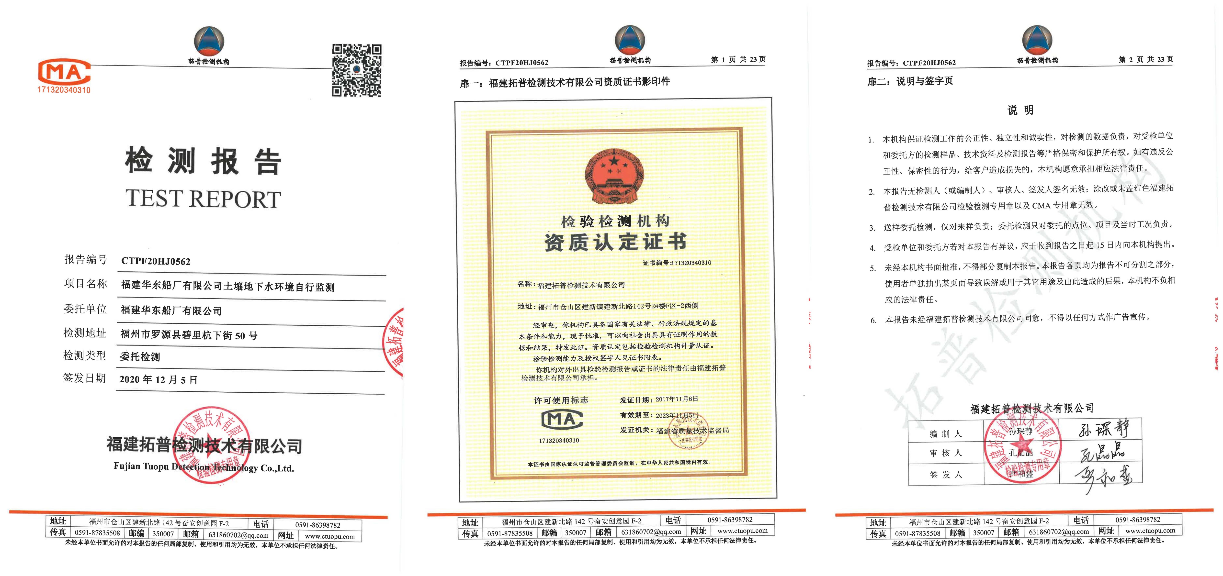 華東船廠位于中國最理想的深水避風良港--一中國福建羅源灣的北岸(北緯26 27“N.東經119 43' E),于2011年投入運營。廠區總面積約70萬平方米,擁有深水岸線2250米。船廠已建有40萬噸級(375mx72m)、17萬噸級(295mx50m)、10萬噸級(245mx41.8m)干船塢各1座;5萬噸級船躉(280mx75m)1座;30萬噸級修船碼頭6個泊位總長1300m(第二期計劃增加1個泊位,長度400米),生產車間等廠房約5萬平方米,并配套相惠的生產設施、般備。